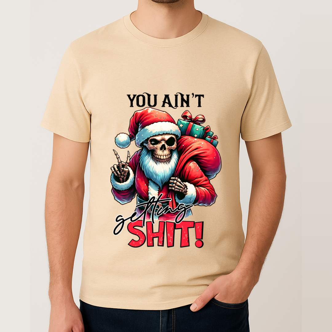 Make Christmas more stylish with this limited edition "Aint Getting SHIT" skull shirt, Why be mild when they can be wild and stand out in our once a year special designs.